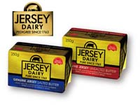 ジャージー種の原産地であるジャージー島で製造された本物のジャージーバターです。約3000頭の完全に血統管理されたジャージー種からのみ搾乳された生乳から生産されており、カロチンが豊富に含まれ、黄色味が濃く、風味が強く、クリーミーなのが特徴です。 商品構成は食塩無添加と加塩の2種類で、250g入りの家庭用バターと、食塩無添加には5kg流し込みもご用意しております。 食塩無添加は、ジャージーバターの風味とコクが感じられるシンプルなパンやスコーン、焼き菓子の練り込みにお勧めです。また、クリーミーな性状から、バタークリームやレーズンバターにも最適です。 加塩は、しっかりとした塩味とジャージーバターの風味がテーブルバターとしてパンの味を引き立てます。魚介類のソテーやじゃがバター等のお料理にもお勧めです。 |